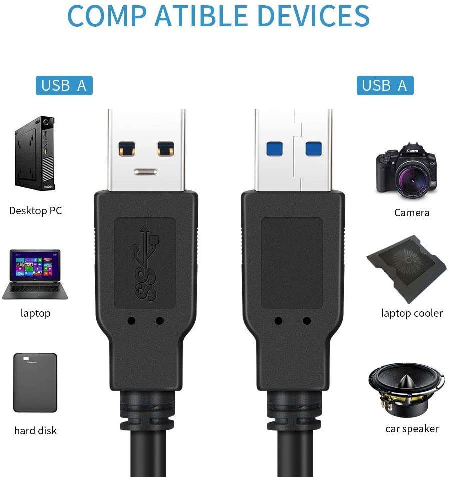 - The cable features USB 2.0 Type A Male to USB 2.0 Type A Male connectors